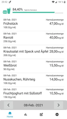 Personalizējiet savu pieredzi, veidojot un saglabājot savas iecienītākās ēdienkartes, kuras varat ērti pārvaldīt – dzēšot tās ar vienkāršu vilcienu. Atzīmējiet bieži lietotos pārtikas produktus kā favorītus, lai tiem ātri piekļūtu. Datu ievadīšana ir elastīga – varat individuāli iestatīt pievienotā ēdiena datumu, labot ierakstus ar garu spiedienu vai dzēst tos ar vilcienu. Lietotne nodrošina arī iespēju brīvi iestatīt personīgos maksimālos purīnu līmeņus, kas, protams, jāapspriež ar savu ārstu. Mūsu datu bāze tiek automātiski atjaunināta, nodrošinot vienmēr aktuālu informāciju. Ja atklājat, ka kāds produkts trūkst sarakstā, vienkārši iesniedziet pieprasījumu, un mēs to pievienosim pēc iespējas ātrāk.