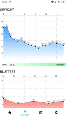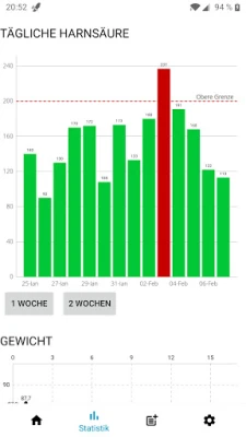 Iegūstiet skaidru pārskatu par savu purīnu patēriņu, aplūkojot detalizētas statistikas par pēdējo dienu datiem. Sekojiet līdzi svara izmaiņām, un ļaujiet lietotnei automātiski aprēķināt jūsu Ķermeņa masas indeksu (ĶMI), sniedzot skaidru priekšstatu par jūsu progresa gaitu. Turklāt uzraugiet urīnskābes līmeni asinīs, piekļūstot vēsturiskiem datiem, kā arī redzot minimālās un maksimālās reģistrētās vērtības. Šie dati tiek prezentēti viegli saprotamā veidā, ļaujot jums ātri identificēt tendences un veikt nepieciešamās korekcijas.