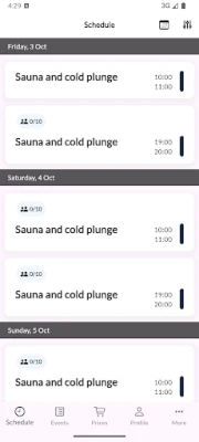 Miers padara jūsu pieredzi nevainojami vienkāršu un daudzveidīgu. Izmantojot lietotni, jūs vienmēr esat viena pieskāriena attālumā no savas ideālās atpūtas vietas. Atklājiet plašu vadīto rituālu klāstu – no dziļi relaksējošām "Deep" sesijām līdz enerģiskām "High" un plūstošām "Flow" pieredzēm, kas apvieno saunas siltumu, ledus spēku, elpošanas vingrinājumus un nomierinošu mūziku. Papildus tam lietotne sniedz iespēju atklāt unikālus pasākumus, piemēram, "sauna klubiņa" vakarus vai ekskluzīvas kopienas sesijas, kas pieejamas tikai biedriem, tādējādi paplašinot jūsu labsajūtas horizontus.