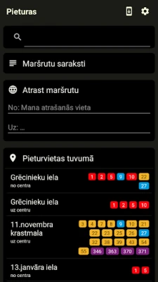 Kustību saraksti piedāvā visaptverošus rīkus jūsu ērtībām. Iespēja saglabāt iecienītākos maršrutus un pieturvietas ļauj piekļūt kustību sarakstiem pat bezsaistē, garantējot, ka nekad nebūsit bez informācijas. Varat viegli meklēt pieturvietas un maršrutus visā Baltijas reģionā, ātri atrodot labāko ceļu uz galamērķi. Lietotnes inteliģentā navigācija ņem vērā reāllaika kavējumus un atceltos reisus Latvijā, nodrošinot, ka jūsu ceļojuma plāns vienmēr ir precīzs un aktuāls. Turklāt varat apskatīt reisu cenas, pielāgojot tās ar savām atlaidēm, un sekot līdzi transporta atrašanās vietai kartē, kā arī precīziem atiešanas laikiem atsevišķiem pārvadātājiem.