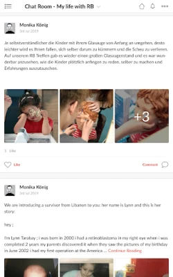 Ienāciet aizraujošajā retinoblastomas skarto cilvēku pasaulē: izdzīvojušie, vecāki, ārsti un okurālisti no visām vecuma grupām, kultūrām un valstīm. Atklājiet personiskus stāstus, vērtīgas domas, medicīniskus padomus un iegūstiet jaunus draugus visā pasaulē.