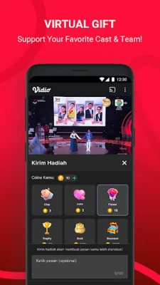 Vidio satura klāsts ir patiesi iespaidīgs. Sporta entuziasti var sekot līdzi adrenalīna pilnām spēlēm, piemēram, Premjerlīgai, BRI Liga 1, UFC, UCL, Serie A, MotoGP un F1, kā arī piekļūt populāriem sporta kanāliem, piemēram, BeIN Sports, SPOTV un Champions TV. Izbaudiet ekskluzīvus Vidio oriģinālseriālus, tostarp Algojo, Pertaruhan The Series un Jalinan Terlarang, blakus iemīļotām korejiešu drāmām, piemēram, Lovely Runner un S Line. Mūsu plašā filmu un drāmu kolekcija aptver dažādas pasaules, piedāvājot gan Indonēzijas filmas, piemēram, Rangga Cinta, gan mandarīnu drāmas, kā Love Ambition, un aizraujošas korejiešu asa sižeta filmas, piemēram, Exhuma. Bērniem patiks iemīļotās multfilmas un seriāli, piemēram, Minions: The Rise Of Gru un Ejen Ali The Movie 2: Misi Satria, kamēr anime cienītājiem būs pieejami jaunākie Jujutsu Kaisen 3. sezonas un One Piece sērijas. Papildus tam, Vidio piedāvā plašu nacionālo un starptautisko TV kanālu izvēli, piemēram, SCTV, Indosiar, tvN, Arirang un Aljazeera, kā arī Taizemes un Japānas drāmas, mūziku un vēl daudz ko citu.